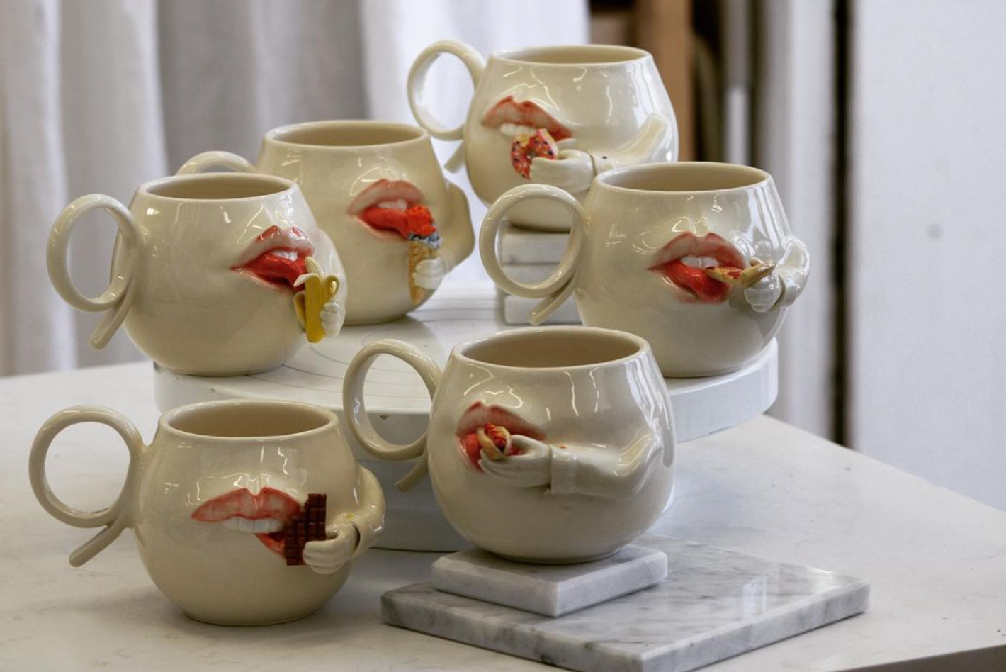Porcelain mug biting lip