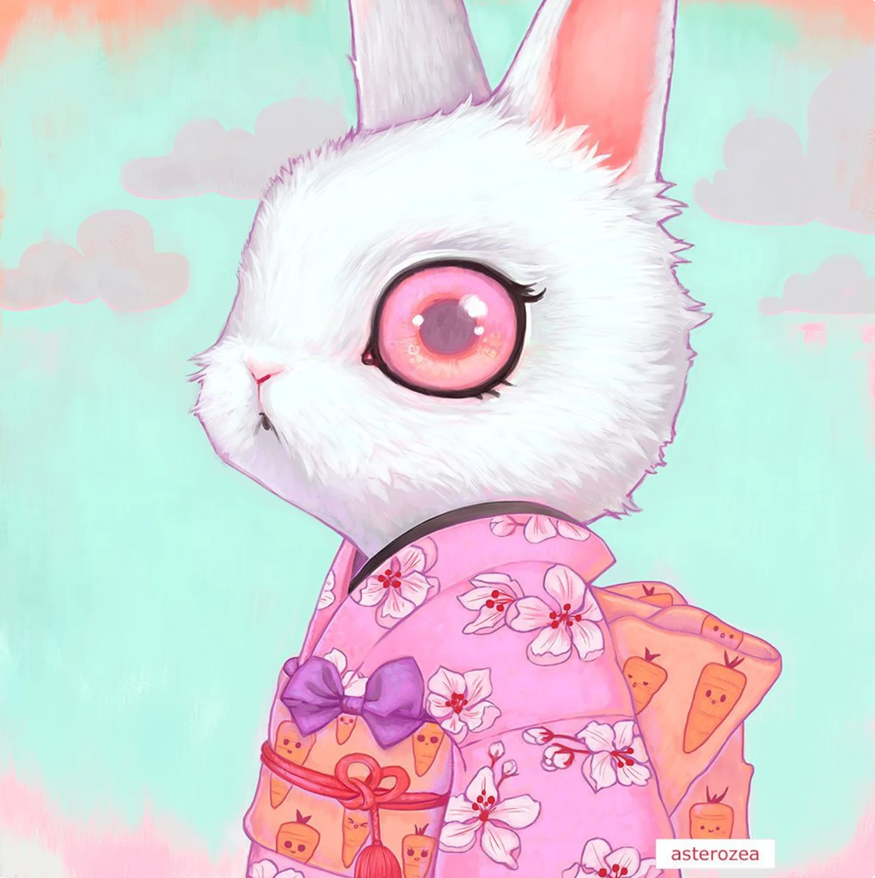 "Kawaii Bunny Kimono", Digital art print