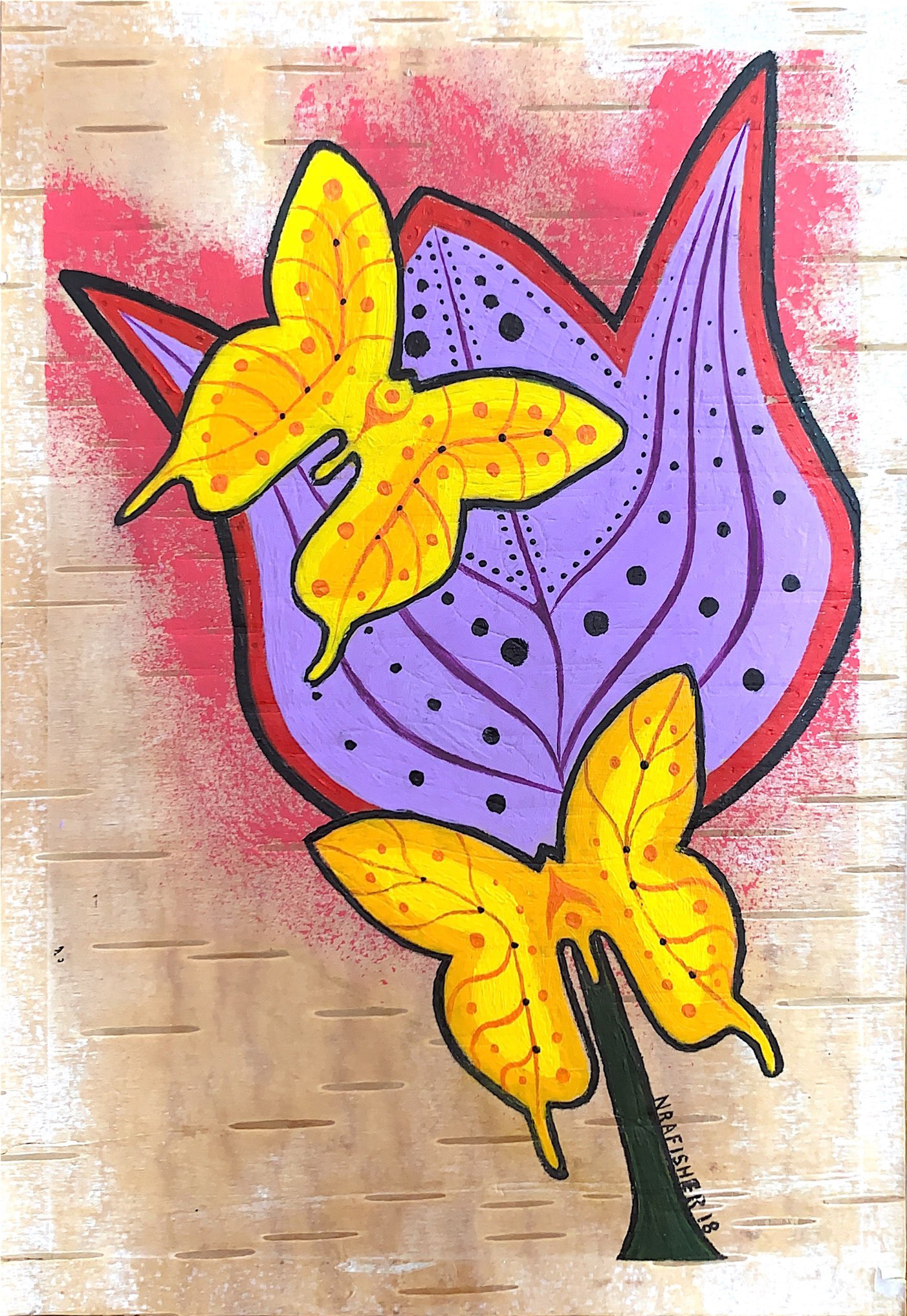 "Butterflies", paint on birch bark